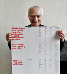 Massimo Vignelli is an Itlaian designer known for working on various pieces of designs for many different types of designs. Many name brands were designed by Vignelli.