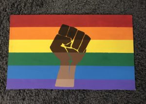 This is originally an All Lives Matter picket sign that I painted over and hung in my window in my dorm. I believe this is balance because of how the stripes all form together even through the fist, and the color schemes flow perfectly.