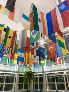 I originally took a photo of my portable charger with a repetitive design, but it seemed too boring. I got really excited when walking past the student center and ran inside to take a picture of the flags in the flag room. I think this could go either repetition or variety. I chose repetition because of the repeating of flags. They’re not all the same flag, but they’re all flags lined up in rows and columns.