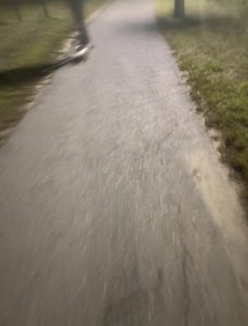 Movement: In this image, movement is represented. In a design that expresses movement, the focus must show an illusion that guides the readers eyes to a path of direction. As used in this photo, the focus of only the road shows movement as a skateboarder in the background faintly passes by. The grass is blurred, making the illusion that we are only looking at the pavement and that our eyes are immediately heading into one direction.