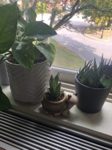 The plants are all different sizes, but the sizes look nice when they are put together in one area. By having the two larger ones to the side, it draws attention in to the center of the plants which is also the smallest one.