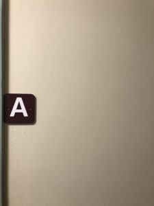 This represents white space, because it is a small A with a large amount of space around it which draws your eye to the A which is the focus of the image. It makes the A stand out against the plain wall.