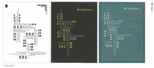 This particular set of posters by Trace Byrd I found interesting. I enjoyed the minimal color palettes and seeing how it works with the type hierarchy. The composition stuck with me as I found the use of negative space on the right to be effective, as well as how the text is facing/turned to be the orientation (vertical or horizontal) that it is boxed in (columns or rows). I think I tend to forget I could design in a similar way, breaking the standard front facing direction that text appears as and using the grid directions to the fullest.