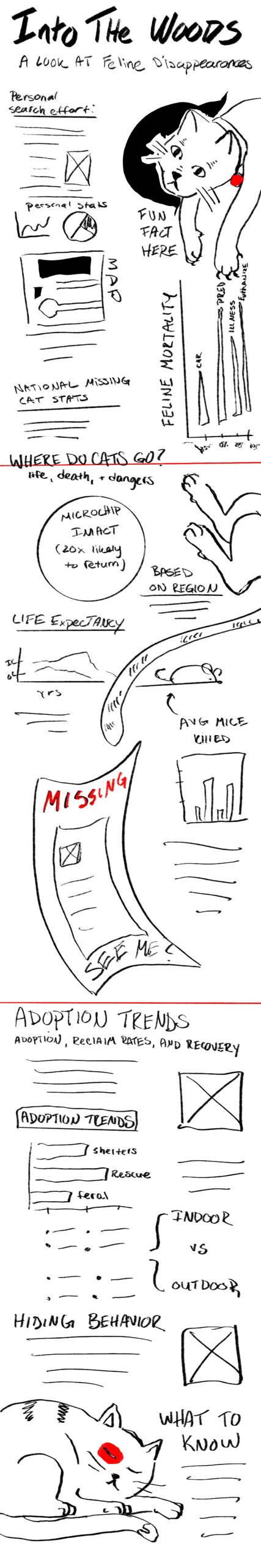 Lost Cats: Editorial, Copy (text), Data Visualization (Pie Chart, Bar Graph, Line Graph)