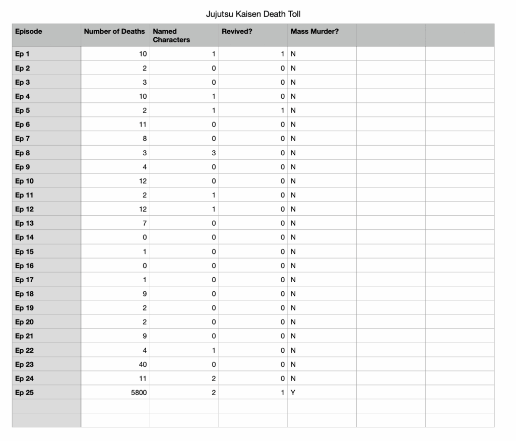 • The episode with the most deaths is “______”, with a count of 11,890 deaths.