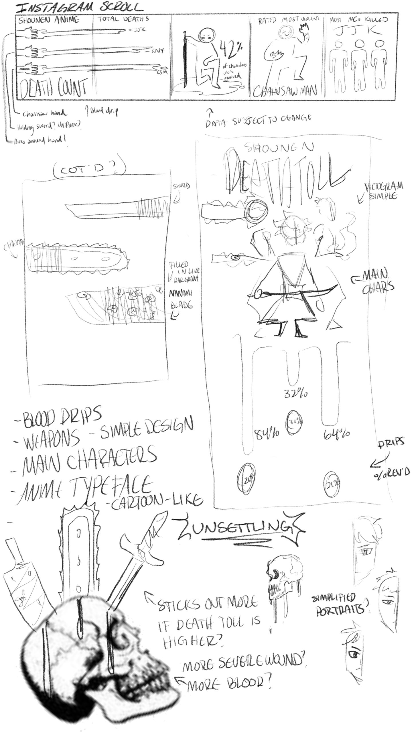 I want to delve into the macabre and uncomfortable feeling of this morbid topic. The shows have a certain appeal to those who enjoy the drama and horror in character death. Deep reds and contrast will help assist, as well as strange imagery.