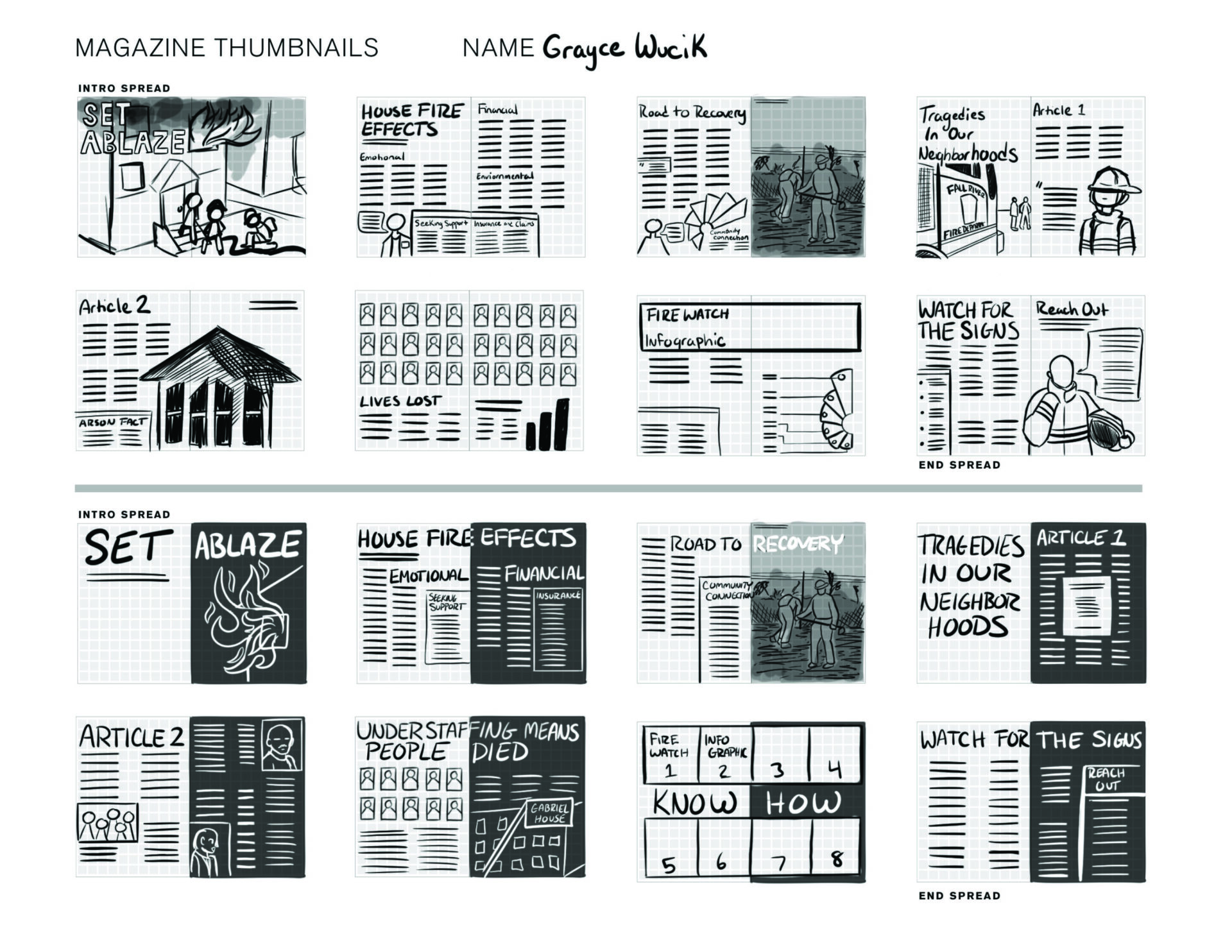 Smaller Article(s): 1-2 Articles about personal stories/examples of house fires; including interviews on families and the responding fire-fighters.