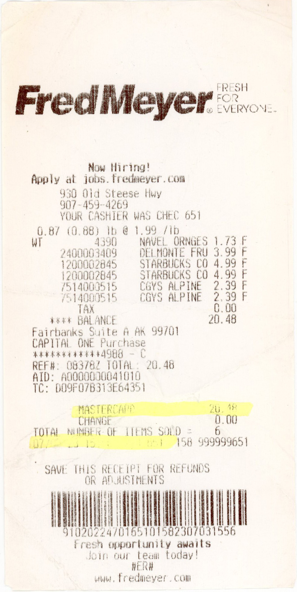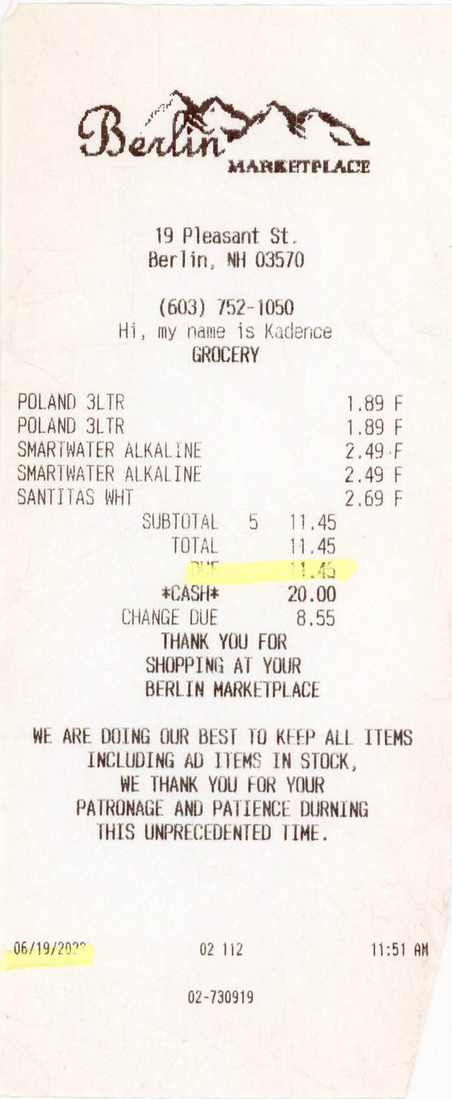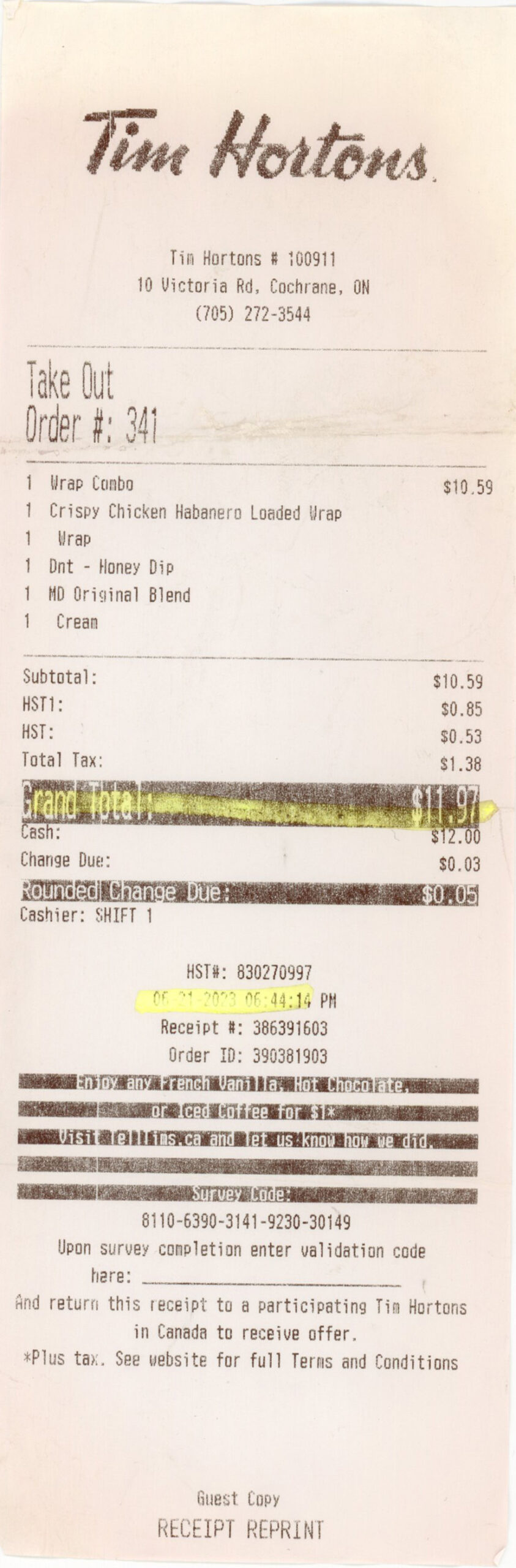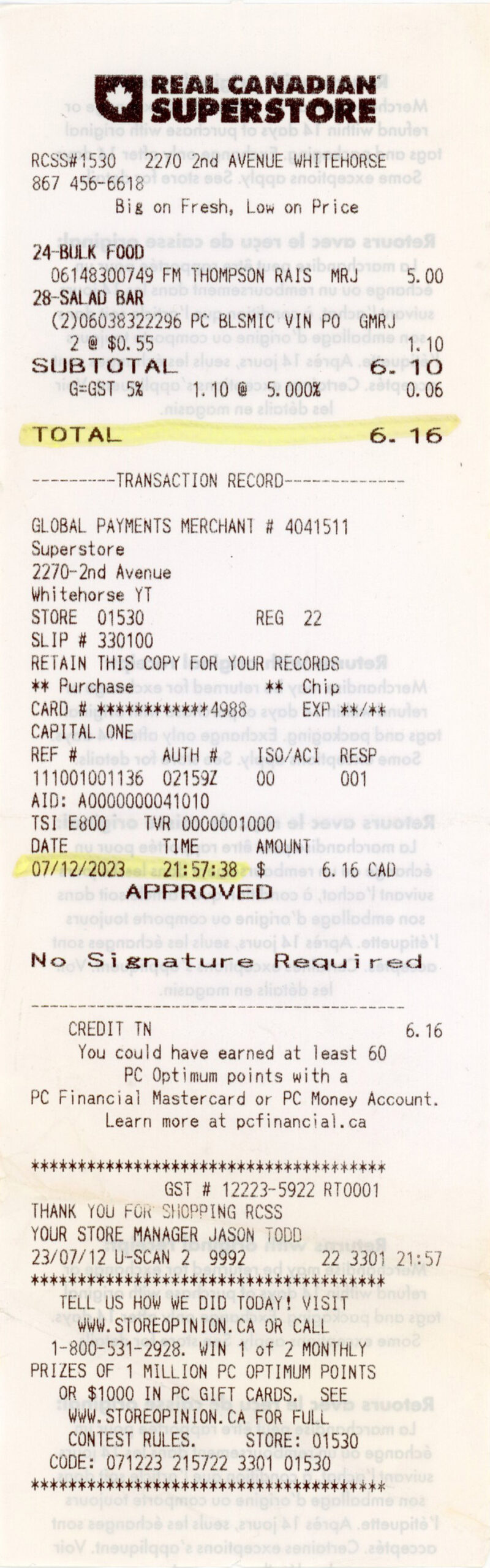 Date/Items/Cost/Slogan/cashier/payment/etc ?