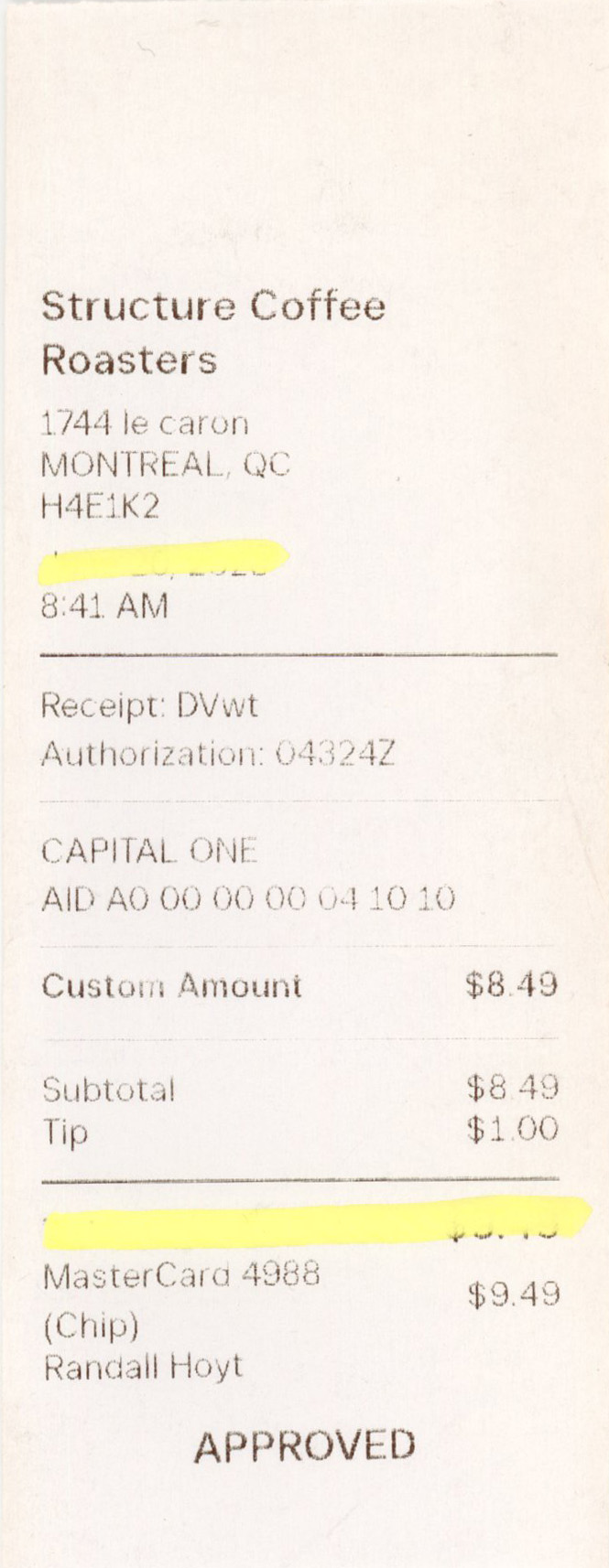 Transcribe the Receipt
