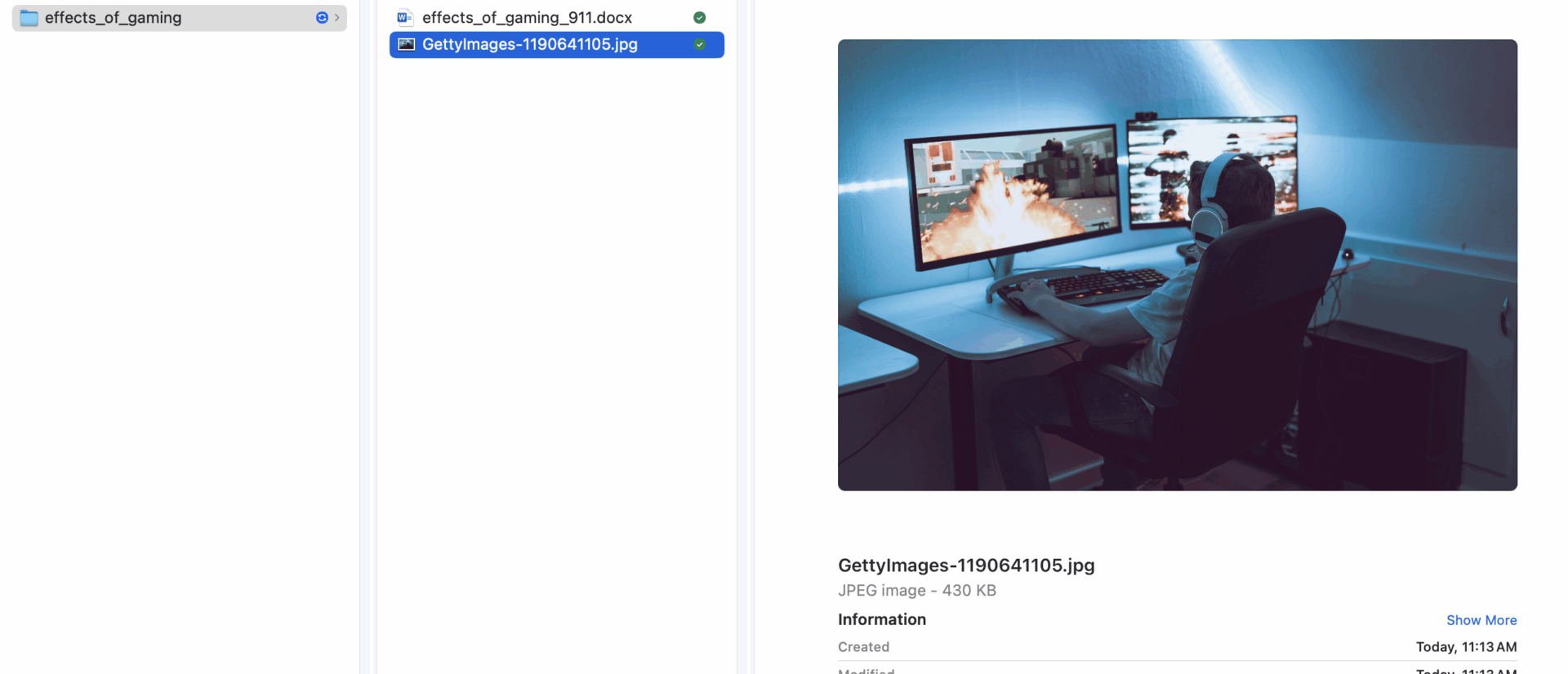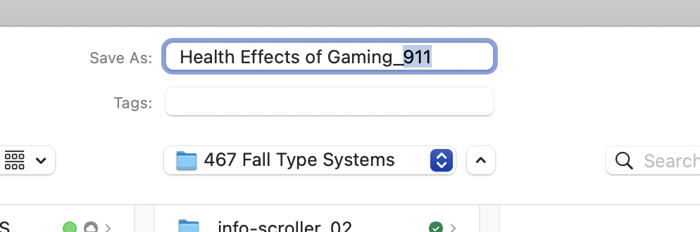 For example: effects_of_gaming_911.docx - Save the text and any images in a folder with the name and number of words