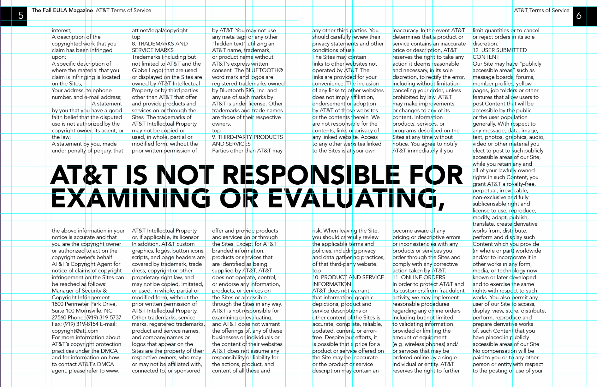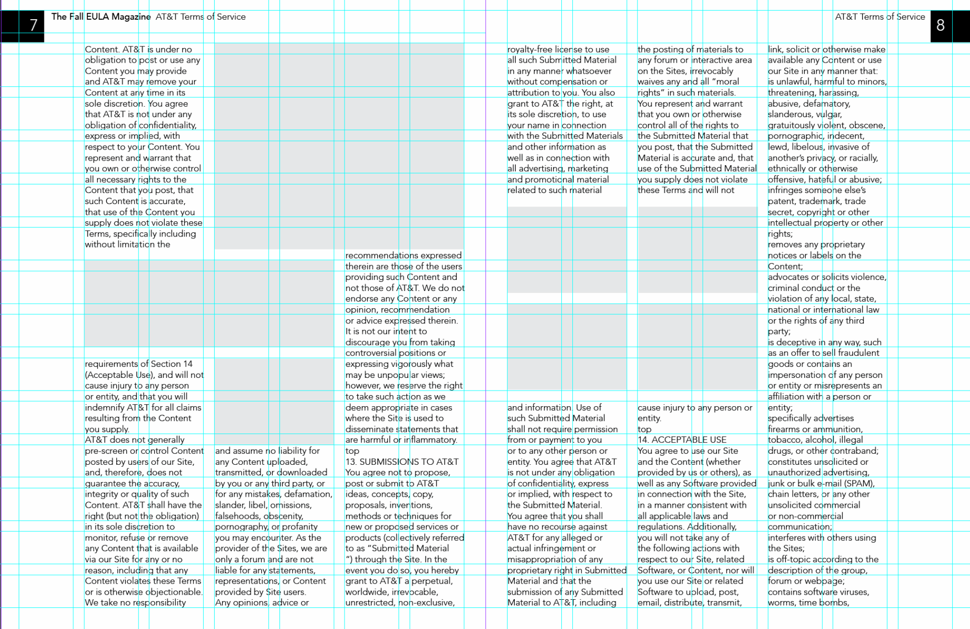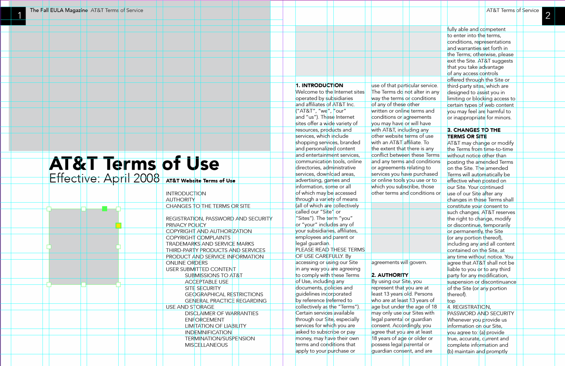 Everything should be in place. All information on opening spreads. End slugs at the end of articles…