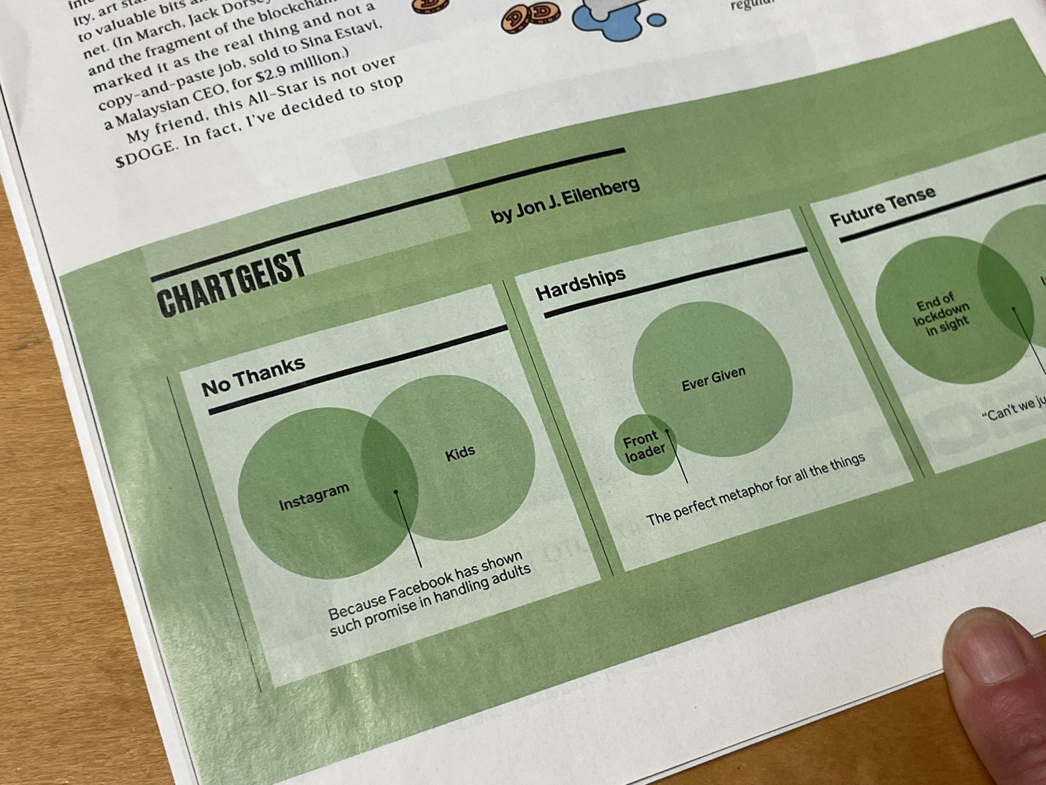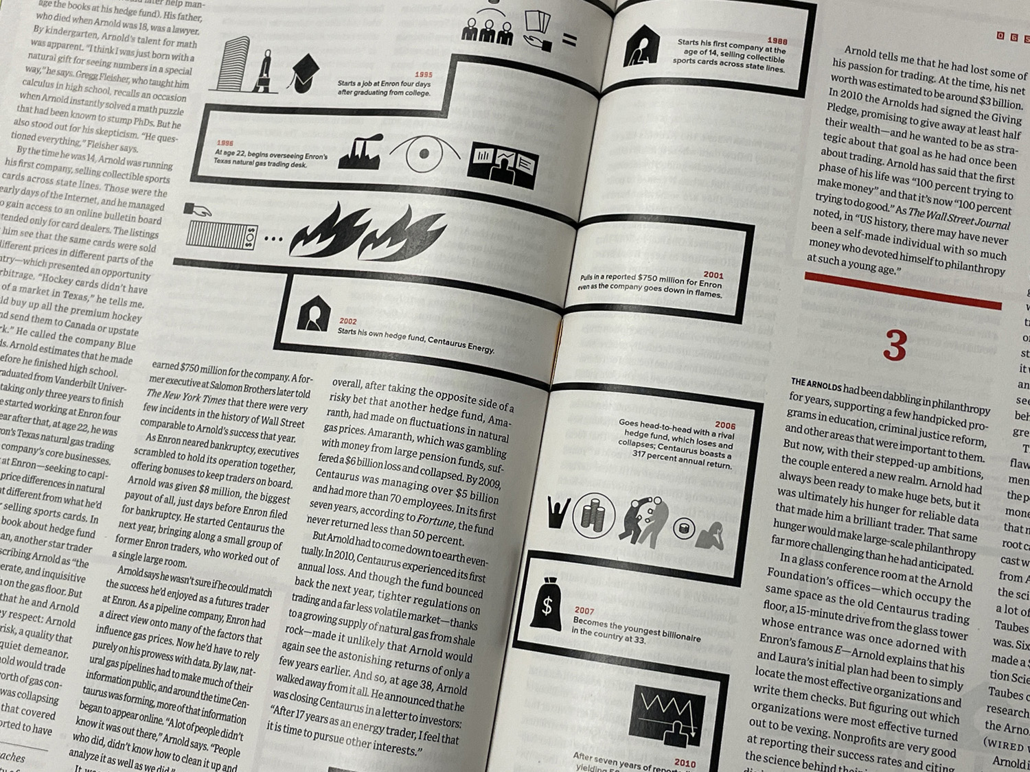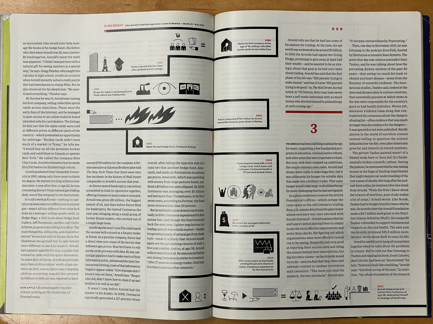 Everything should be in place. All information on opening spreads. End slugs at the end of articles…