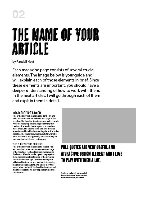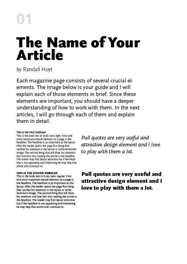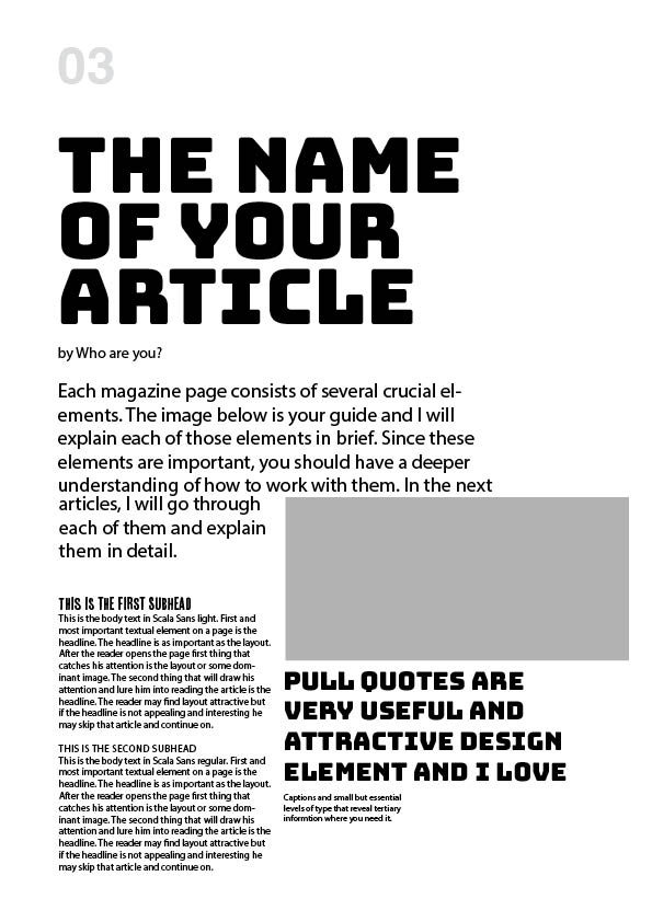 - Headline/ Subhead: An enticing clarification sentence about the ensuing article.